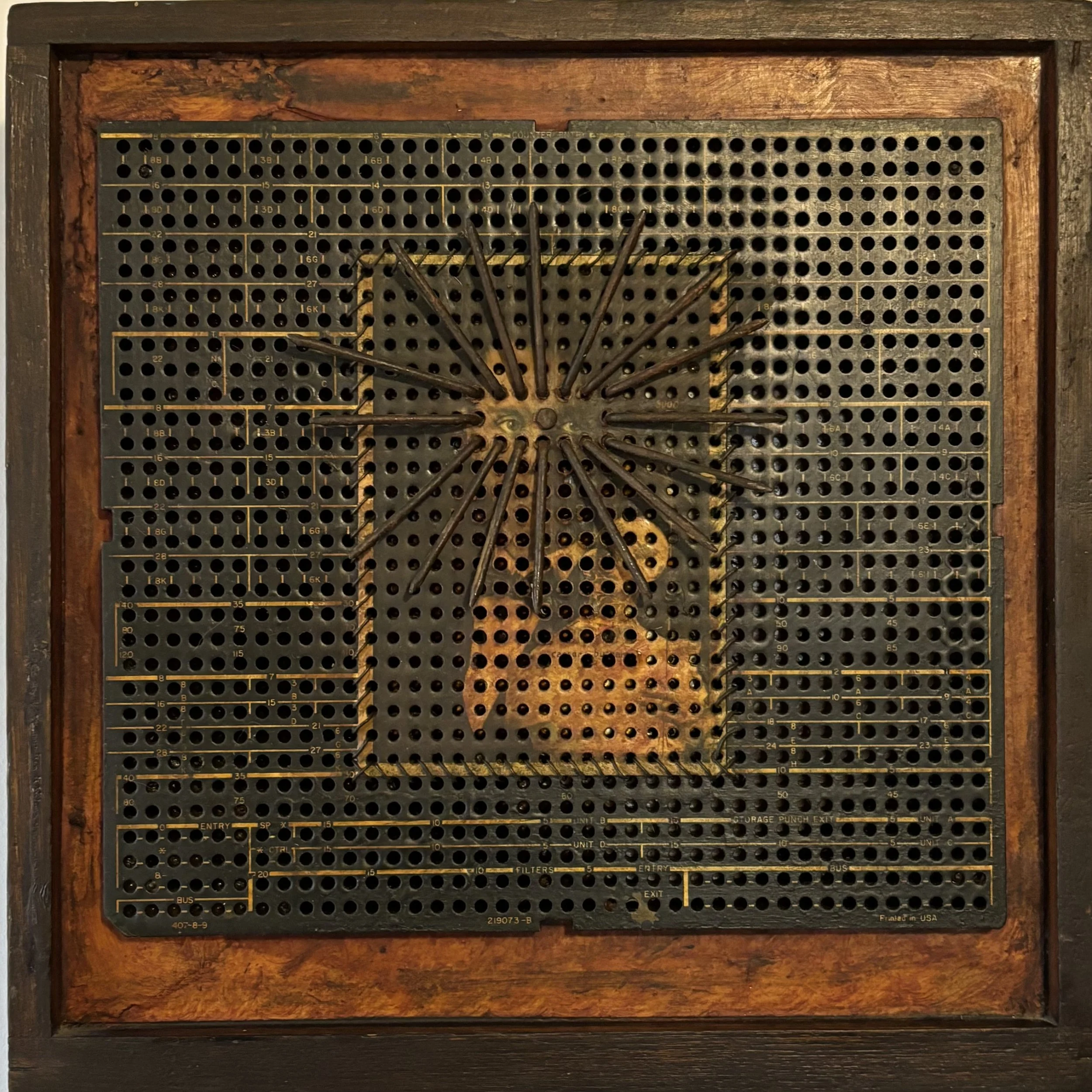 Wood, metal, coral, plastic, spray paint, acrylic and collage in wooden box